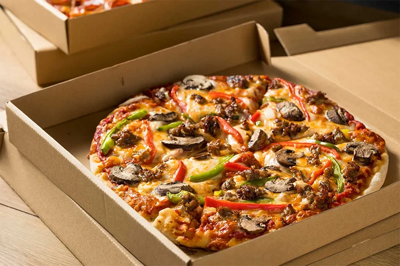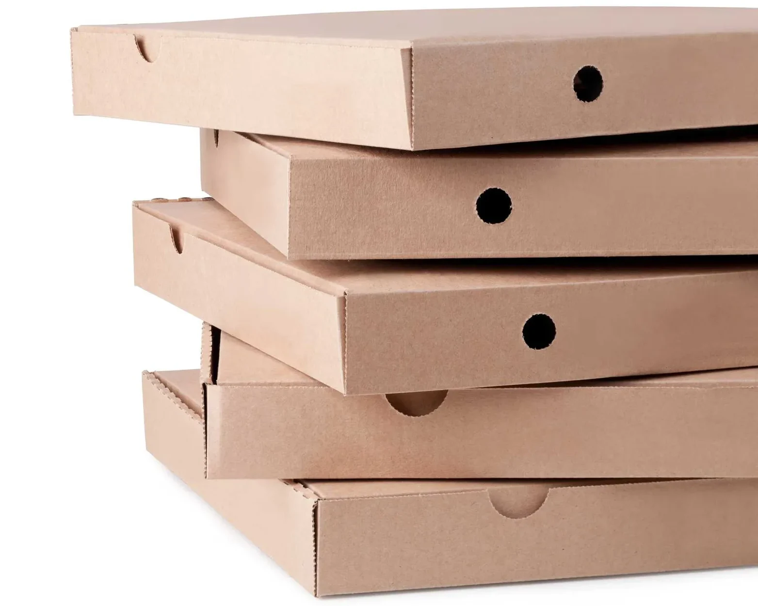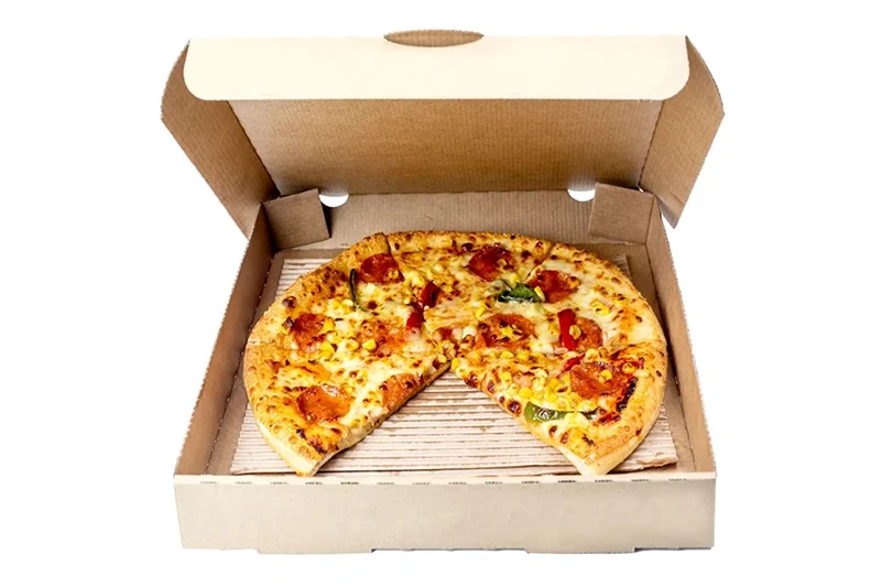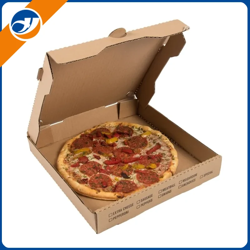 Kothak kertas Kraft biasane digawe saka karton corrugated, sing nyedhiyakake kekuatan lan stabilitas kanggo nyegah pizza ora diremehake utawa cacat sajrone transportasi utawa panyimpenan. Kotak pizza kraft disesuaikan miturut ukuran pizza kanggo mesthekake yen pizza bisa pas ing kothak nalika ngindhari celah sing gedhe banget sing nyebabake pizza utawa rusak. Kothak kertas pizza kraft cocog kanggo kumpul utawa piknik kulawarga, kanthi gampang digawa lan nyimpen pizza. Kothak kertas pizza Kraft minangka bahan kemasan utama kanggo toko pizza, digunakake kanggo nyekel lan ngeterake pizza, mesthekake yen pizza njaga rasa sing paling apik nalika dikirim pelanggan.