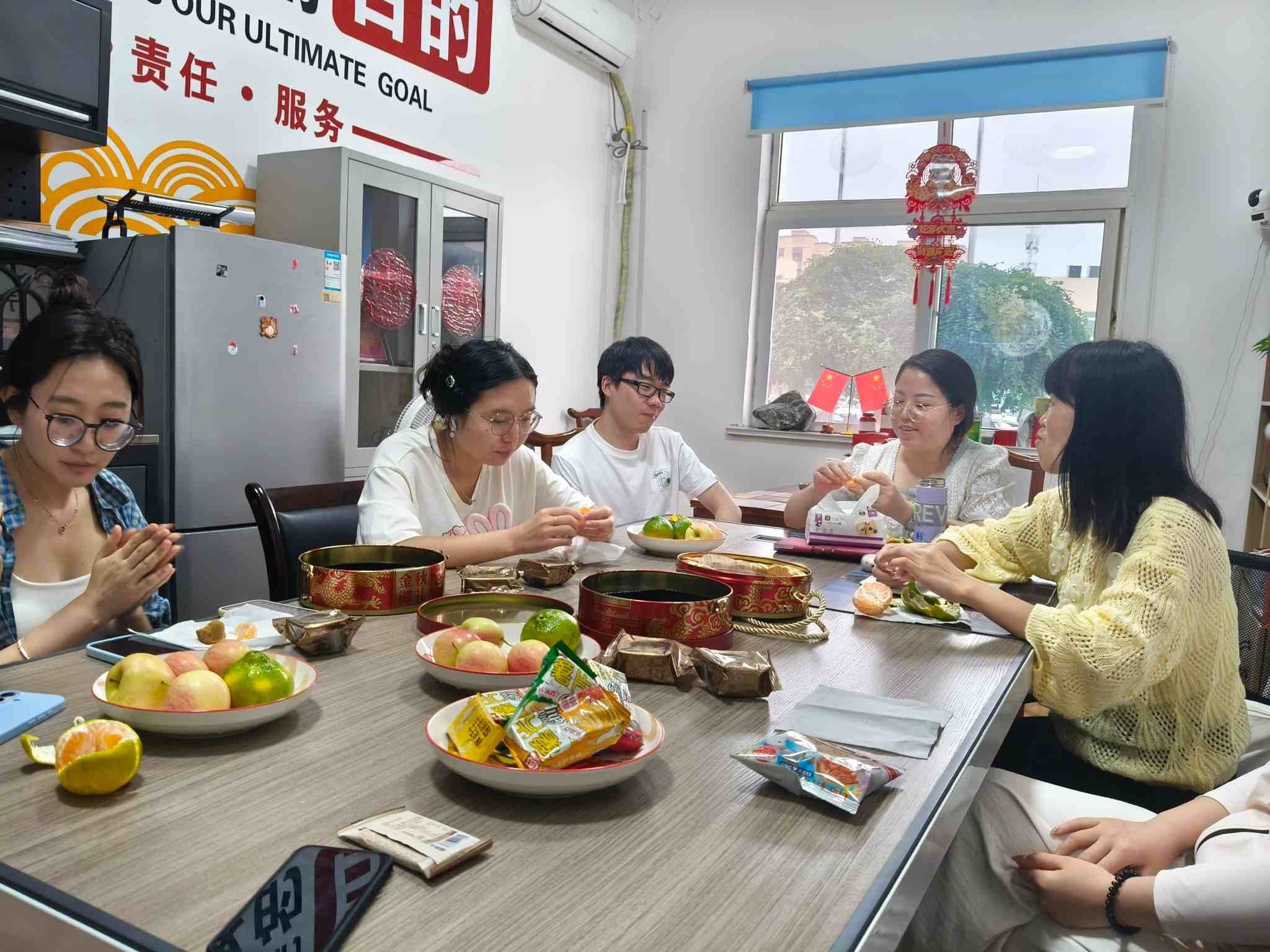 Ing situs acara, Pengurus Wu wis nyiapake macem-macem panganan sing luwih dhisik: Ana macem-macem jajanan karo rasa sing sugih kanthi cepet kanggo kabeh wong, uga woh-wohan musiman seger lan plump sing nggawa rasa sengaja nyegerake. Karyawan sementara nyingkirake pakaryane lan lungguh bebarengan. Kanca-kanco anyar gabung karo perusahaan kasebut, mula kita wis ngenalake awake dhewe. Sawise ngerti siji liyane, kita nuduhake jajanan sing diselehake kanthi rapet ing kothak tong kuthane perusahaan. Iki ora mung lemes kerja, uga dadi kancane anyar ngrasa anget saka kulawarga gedhe perusahaan, luwih sempit jarak ing tim kasebut.