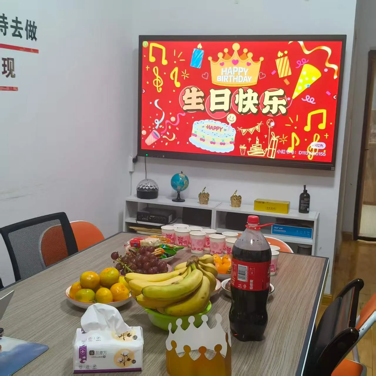 Manajer Umum Gao nyawisake jajan ulang taun manis lan woh-wohan seger kanggo kabeh wong luwih dhisik. Ora ana swara kanthi ora sengaja, kabeh wong sing nuduhake kue alon-alon, lan rasa manis nyebar kanthi tenang, kaya pikirane perusahaan kanggo kabeh wong, nanging tulus banget.