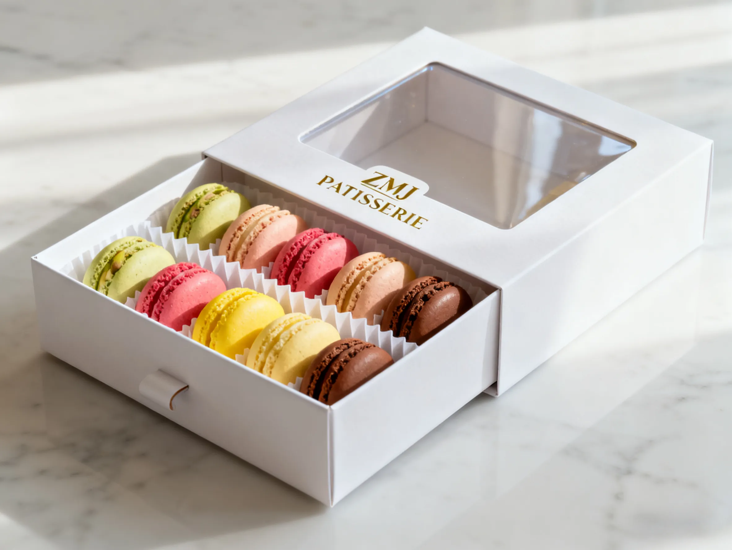 Apa sampeyan nggoleki kothak kemasan kanggo Macarons? Paket ZMJ nawakake kothak hadiah Macaron sing dicithak khusus. Saben kothak wis nggawe sisipan bantal ing sing dibangun lan jendhela tampilan sing jelas. Kabeh produk digawe saka bahan sing cocog karo standar safety panganan. Kita nawakake rega Grosir sing apik lan sampeyan ora kudu nggawe nomer minimal barang. Pilih kothak kemasan kita sing apik kanggo lingkungan kanggo mesthekake jajanan sing enak tetep aman lan muni.